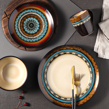 Châu Âu Cổ Điển Bắc Âu In Sứ Bộ Đồ Ăn Đặt Nhà Món Ăn Tấm Cốc Cho Phương Tây Nhà Hàng Đảng Underglaze Tấm